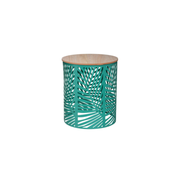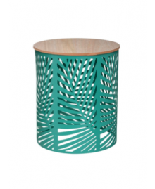 Location d'une table basse design et moderne en fer vert accompagné d'un plateau en bois. Ajoutez du cachet à votre événement grâce à cette table basse.